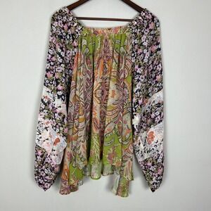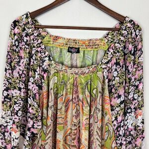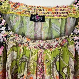The Pyramid Collection Top Womens 2X Floral Paisley Chiffon Sheer Boho Off Shoulder Plus