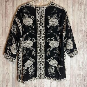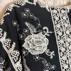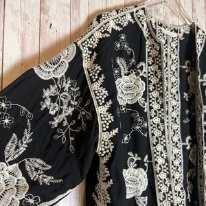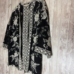 Soft Surroundings Black Ivory Rayon Embroidered Boho Kimono Jacket