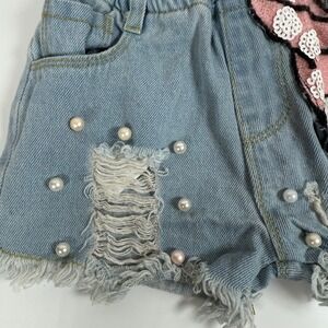 Girls Denim Shorts Daisy Duck Applique Pearls Distressed Frayed Hem Size 7
