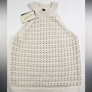 Universal Thread Women's Openwork Halter Crewneck Sweater Tank cream