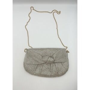 Maeve by Anthropologie Silver Beaded Bow Clutch Purse Chain Strap