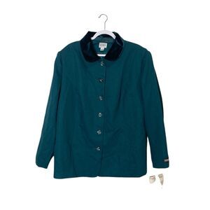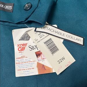 Vintage Koret jacket, washable wool, faux fur collar, detachable collar, NWT vintage, teal wool jacket, classic vintage style, retro outerwear, 80s 90s Koret, vintage blazer jacket, women’s wool coat, deadstock vintage, elegant winter jacket, timeless style, statement collar jacket,