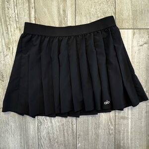Stylish black pleated skirt by Alo. Perfect for casual outings or sports activities. Built in shorts. Mid rise.