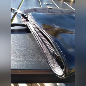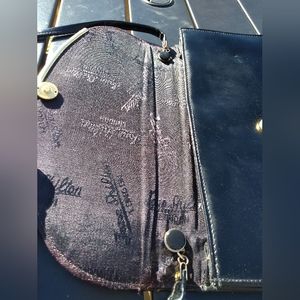Vintage Jane Shilton black genuine leather purse, handbag, shoulder bag. Made in England. Interior zipper pocket. Clean interior, lined in logo material. Some scratches on leather's surface.