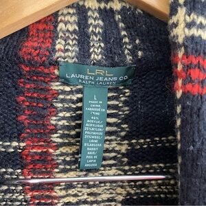 Lauren Jeans Ralph Lauren Black Plaid Wool Blend Long Fringe Cardigan Large