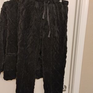 Heartnice ladies 2 piece pajamas set. Button down front with 2 pockets. Pants have an elastic drawstring waist, 2 pockets on seam & elastic cuff on bottom of legs. 100%polyester. Size large. Brand new with tags.
