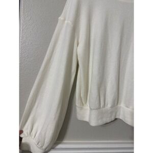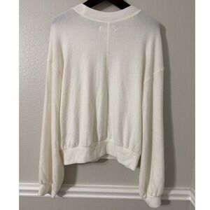 Free People Beach Cream Cozy Balloon Sleeve Crewneck Sweatshirt Fuzzy Soft MED