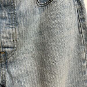 Timeless straight leg relaxed fit. Light blue denim with pinstripe design. Ideal for casual outings. Unique, European summer, chic, trendy.