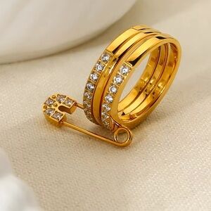 Chic safety pin design. Gold and silver tones. Sparkling accents. Unique and stylish.