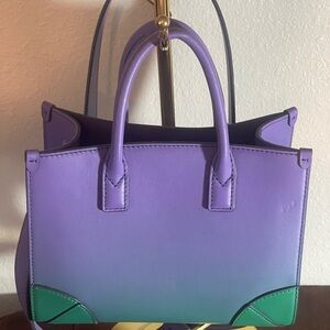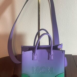 Chic MCM mini bag with a striking purple to green gradient. Ideal for a stylish touch.
