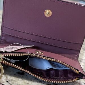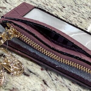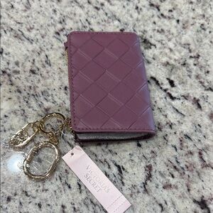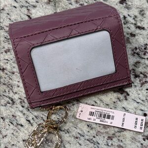 Elegant purple key and card holder. Features quilted design. Includes gold keychain rings.