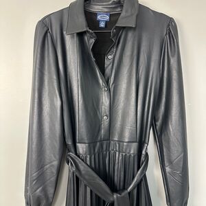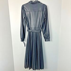 Nwt Scoop Womens Black Soft Faux Leather LS Pleated Midi Dress Size Small (4-6)