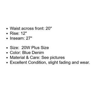 Tahari Jeans Plus Size 20W Dark Blue Stretch Cotton Denim High Rise Skinny