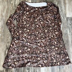Long Sleeve Floral Print Brown Tunic Top Boho Botanical Pattern XXL