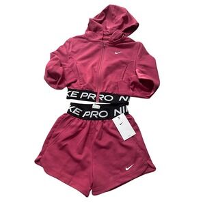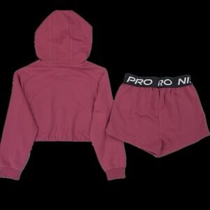 Nike Pro Dri-FIT Crop Hoodie & Shorts Set Girls XS Athletic Activewear