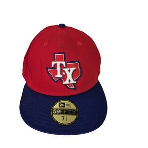 Texas Rangers Hat Cap Fitted Mens 7 3/4 Red Blue MLB Baseball New Era