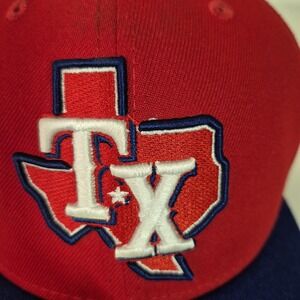 Classic Texas Rangers TX logo embroidered on front with state outline and star highlight.