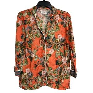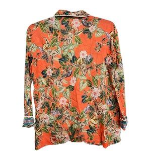 Vibrant floral design. Long sleeves. Button-up style.