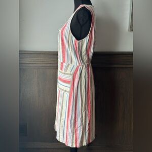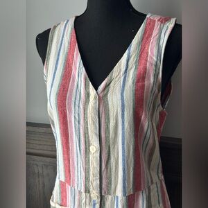 Vibrant fabric with blue, red, and green stripes. Soft texture. Ideal for crafting or sewing projects.