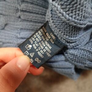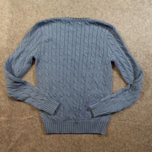 Vintage Ralph Lauren Sweater Womens Medium Blue Cable Knit VNeck Fisherman