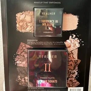 Illuminate your look with RealHer's highlighter and shadow palette. Achieve a radiant glow with ease.