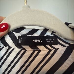 Mango Black and White Striped Long Sleeve Dress