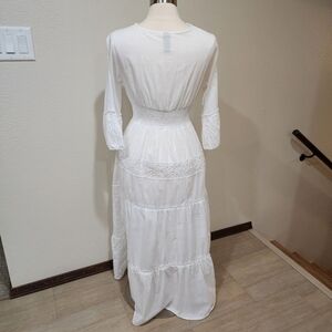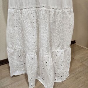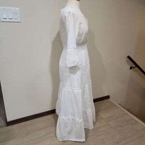 Me 2 Magic Anthro Midi Dress Eyelet White Bridal Smocked Tiered size Large