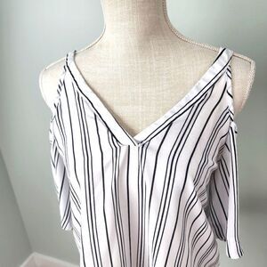 Sienna Sky women's striped top. Size Small. Cold shoulder. V neck and back. 100% polyester. Like new. No tears or stains.