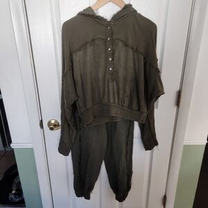 Free People Movement Windy Meadow Sz XS Womens Fringe Sweatshirt Pants Set Green