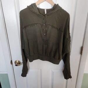 The Free People Movement Windy Meadow Sz XS Women's Fringe Sweatshirt Pants Set in Green is a 2-piece outfit perfect for travel, activewear, and casual occasions. The set includes a long sleeve pullover sweatshirt with fringe accents and tapered leg pants made from a soft fleece fabric blend of polyester and modal. The bohemian and athleisure-themed outfit features an elastic waist, pockets, and is ideal for the winter, fall, and spring seasons. Perfect for women looking for a stylish and comfortable outfit set to add to their wardrobe. One minor stains on collar which can't even be captured on camera. Otherwise EUC. Set comes with hoodie and joggers pants. Set retails for $118