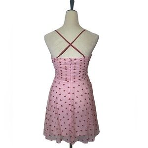 Altar'd State Pink Dress With Red Glitter Hearts. Back zip. Adjustable straps. Size S. Armpit to Armpit 17 inches. Length 32 inches.