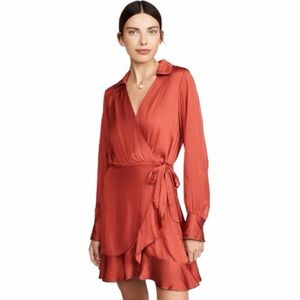 NWT! Paige Tulip Red Parisa Embroidered Detail Satin Wrap Dress. Size XS.