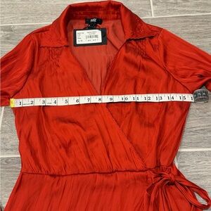 New with Tags! Paige Tulip Red Parisa Embroidered Detail Satin Wrap Dress. Size XS. Please see photos for measurements.