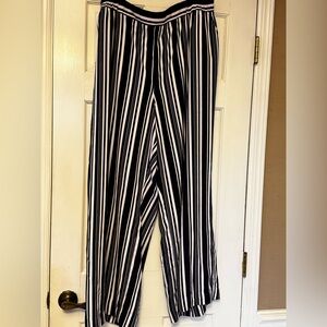 Relaxed fit, wide leg jeans; darker wash with faded thighs; lightly distressed, some stretch. These run large.