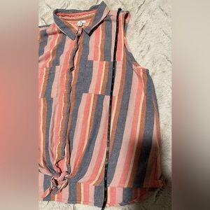 Dip Pink and Blue Linen Sleeveless Front Tie Striped Shirt