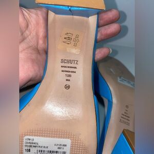 Elegant blue heeled slides by SCHUTZ. Perfect for adding a pop of color. Worn once. Shows slight signs of wear. See pictures. Channel a minimal chic mood in the Lizah strongSandal/strong. This low-heeled mule is crafted from smooth leather for a versatile and refined addition to your rotation Material: Napa Leather Rubber heel patch at leather sole Leather Insole Triangle-shaped heel Mule sandal Squared open toe Heel height: 2.1 in | 55 m. #schultzLuxuryHeels #schultz #bluelowheels #bluepumps