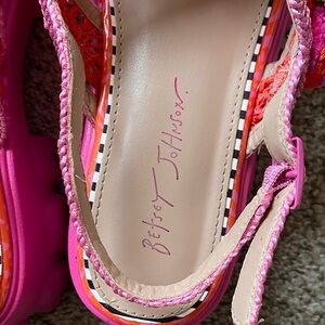 Betsy Johnson beaded embellished pink colorful sandals. In great condition. So unique and fun. Size 8.5.