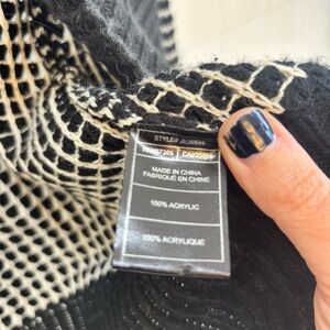 Stylish and cozy black and white women's cardigan, perfect for layering in any season. 100% acrylic and has a soft, slightly hairy appearance. Pics shows. Two front pockets. One of my personal faves. The sleeves are snug so it fits true to a small even though body is looser. Bundle to save on pesky shipping. All of your questions and offers are welcomed. Xox