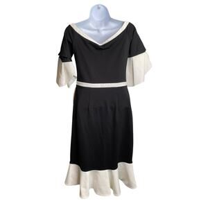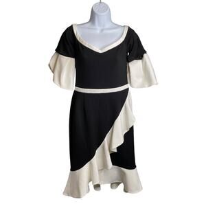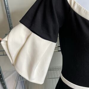 Anne Fontaine Women's Black White Moera Ruffle Dress Size 38 Parisian Chic