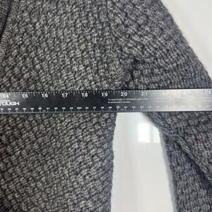 The Athleta Women's Charcoal Gray Wool Yak Hair Shawl Collar Cardigan Sweater is a stylish and cozy sweater designed for women in size medium. Made from a wool blend that includes yak hair, this knit sweater features a geometric pattern, long sleeves, and a collared neckline. It is a heavyweight and stretchy cardigan that is perfect for keeping warm and comfortable. The open design adds a touch of versatility to the sweater, making it suitable for various occasions. Made by Athleta, a trusted brand known for high-quality athletic clothing, this sweater is a fashionable choice for any woman's wardrobe.
