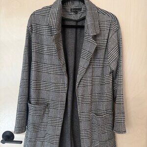 Love Tree Black & White Plaid Open Front Coat / Blazer Large