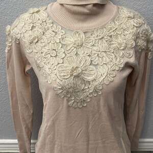 Boston Proper -Flower Embroidered Turtleneck Sweater Size XS