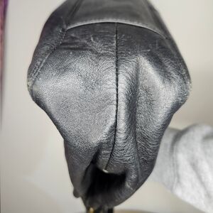 No cracking on handles. Leather and snake-embossing are in good condition. Normal wear for the age. Hardware has some discoloration and tarnishing.