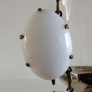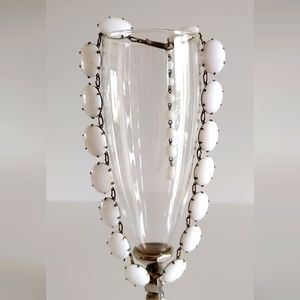 Milk Glass Oval Link Bronze-Tone Metal Necklace Vintage