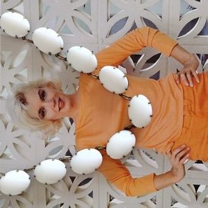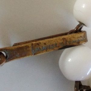 Sixteen-pronged milk glass ovals linked with bronze-tone metal necklace