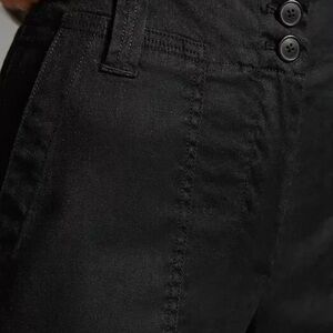 Chic wide leg pants. Sleek black design. Perfect for versatile styling. My camera isn't good enough to capture the beauty and care of the fabric. It's in perfect condition and is second-hand It measures 30 in length
