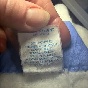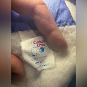 VTG Cuddle Time acrylic baby blanket blue bear appliqué & trim 44x35 inches
