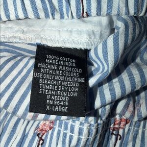 Stylish 100% Cotton Seersucker Flamingo blue and white striped shorts with a playful 🦩 pattern. Ideal for casual outings. Comfortable fit. Brand new, never worn