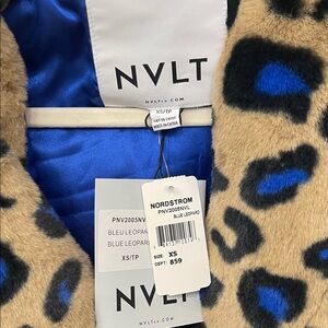Stylish jacket featuring a bold leopard print with striking blue accents. Perfect for adding a touch of fun to any outfit. Has pockets and a hood.