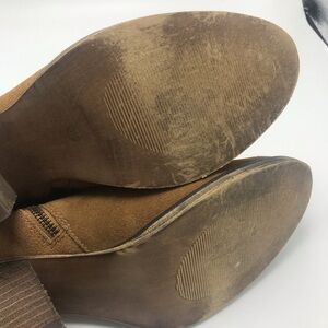 Steven bySteve Madden Brown Suede Leather Booties. Very good used condition slight wear on bottom of shoes. Size 10. Heel 3.25”. (S2)